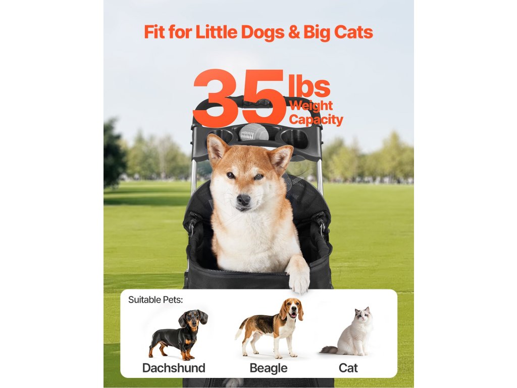 Kočík pre psa a mačky, nosnosť 35 lbs, skladací, 4 kolesá, sieť, brzda