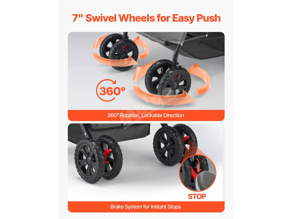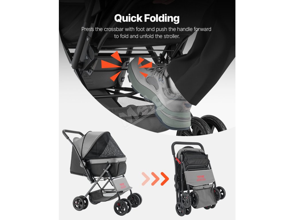 Kočík pre domácich miláčikov je vyrobený z tkaniny 600D Oxford, unesie až 44 kg a má 3 vstupy s priedušnými sieťovanými oknami. Obojstranná rukoväť umožňuje tlačenie spredu aj zozadu Zložte ho za pár sekúnd, kompaktne ho uložte a užite si plynulú jazdu na 7" kolesách. Ideálne pre starnúce, zranené alebo viacčlenné rodiny s domácimi zvieratami.