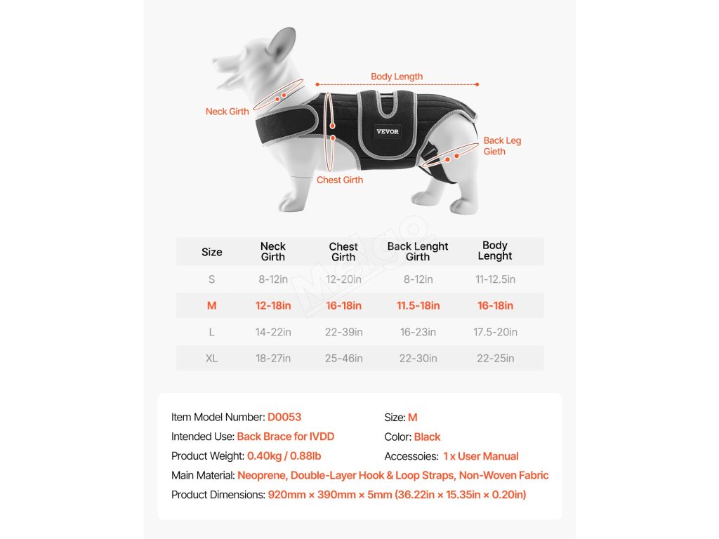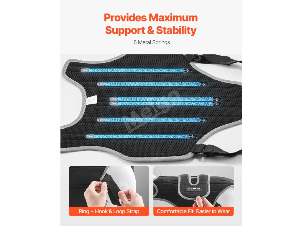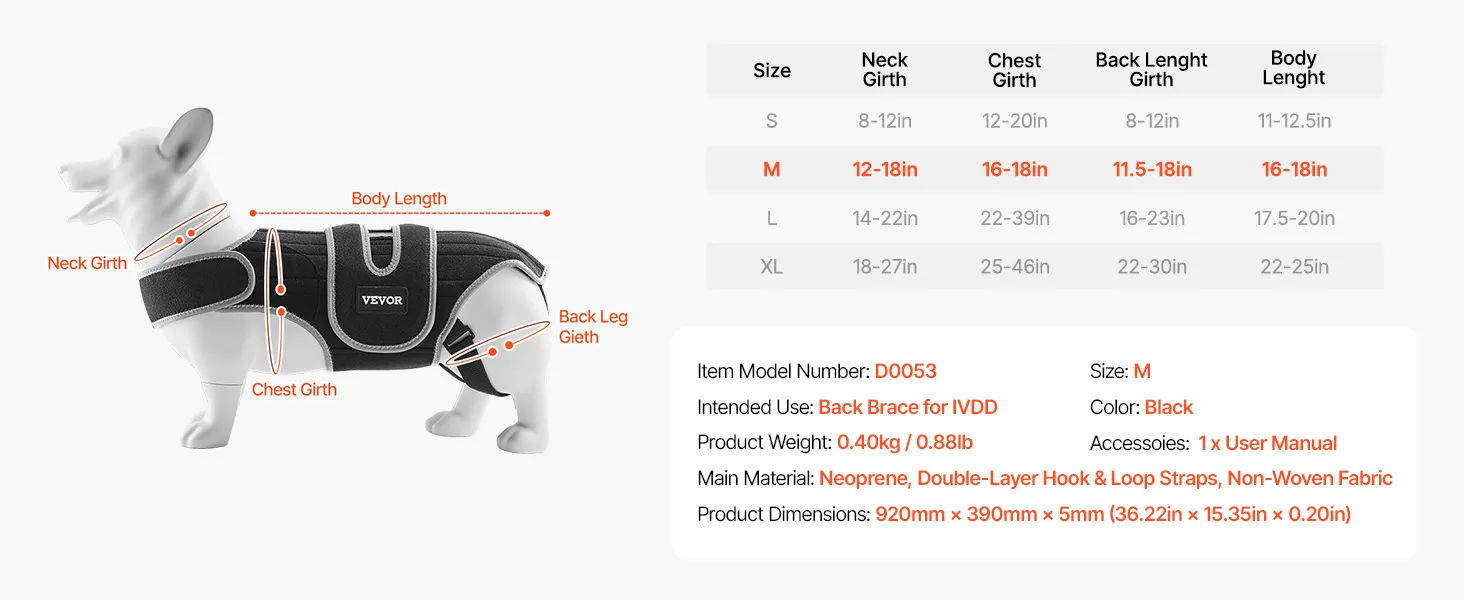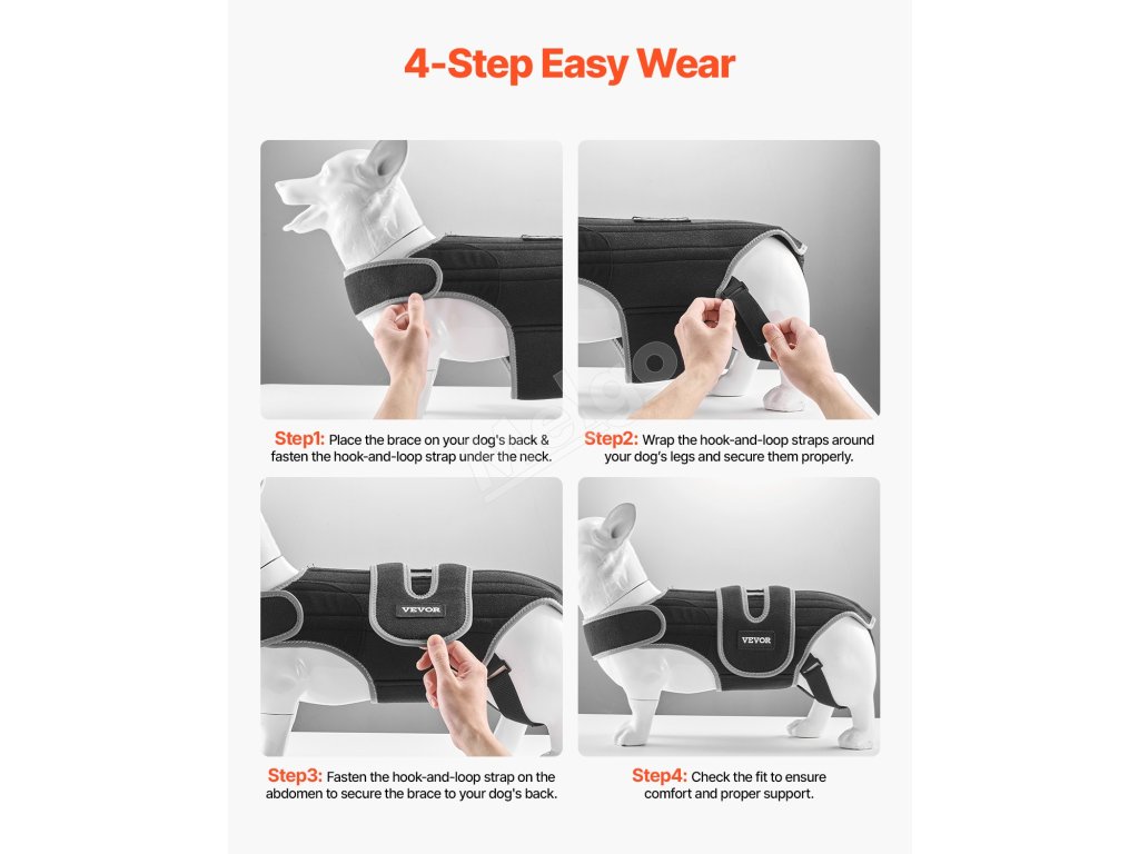 Táto chrbtová ortéza určená pre psov s IVDD a herniou platničiek pomáha zmierniť bolesť a podporuje zotavenie. Vďaka jednoduchému 4-stupňovému procesu nosenia sa prispôsobuje a kovové podpery zaisťujú stabilitu a bezpečnosť. Je vyrobená z kvalitných, priedušných materiálov a zabezpečuje pohodlie pre vášho psa.