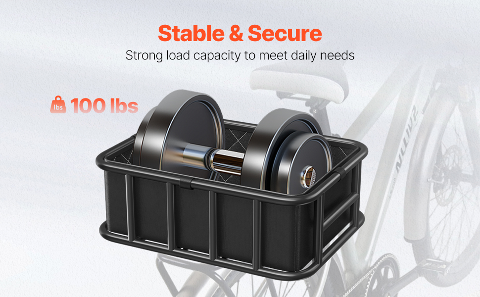 Tento zadný košík na bicykel ľahko unesie až 110 lbs (45 kg), čím výrazne zvyšuje vašu úložnú kapacitu počas jazdy na bicykli alebo nakupovania.