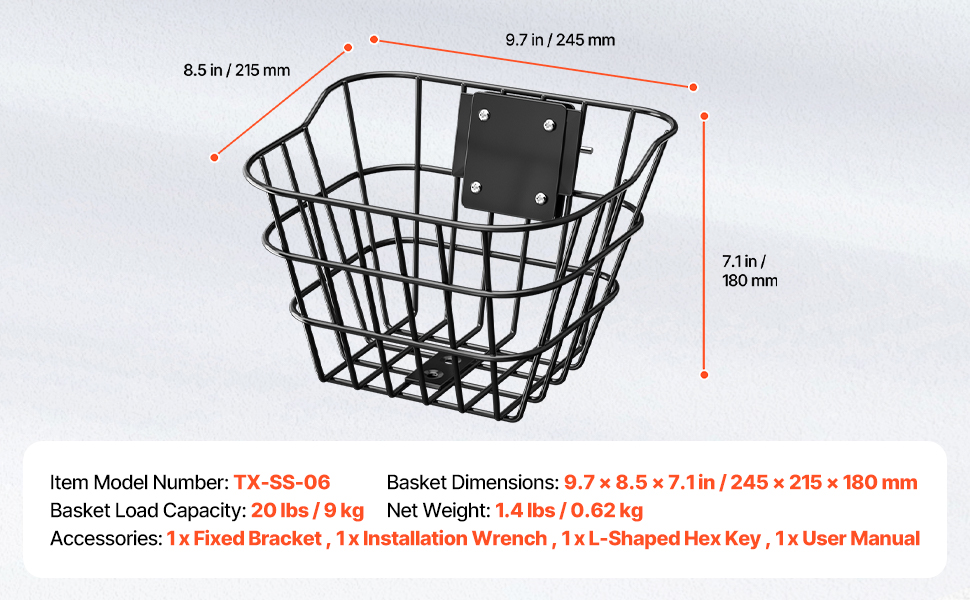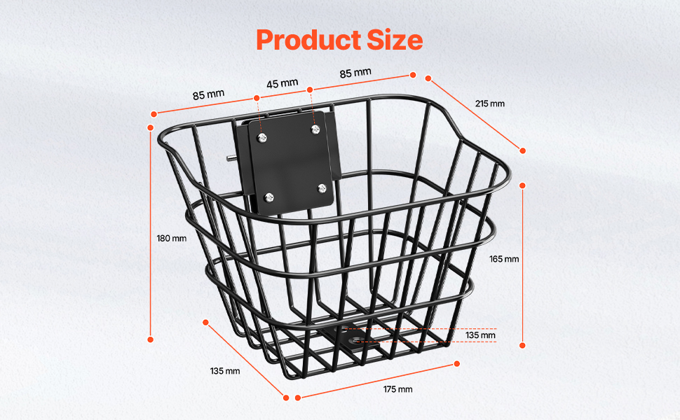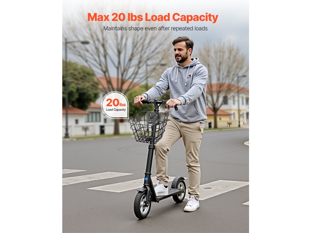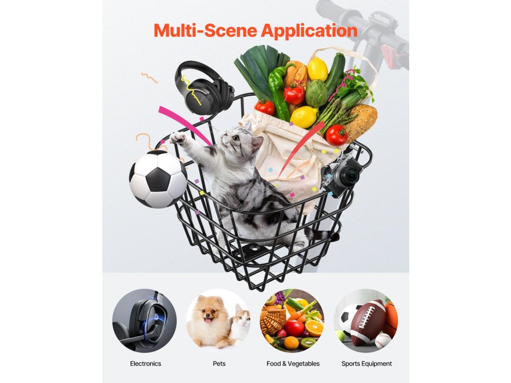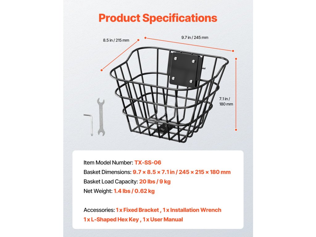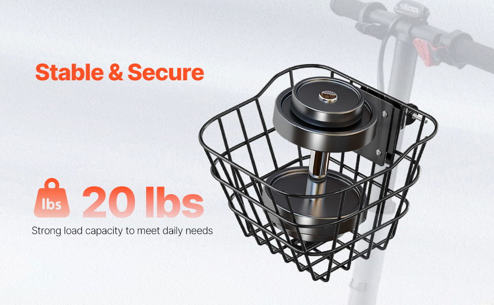 Tento štýlový predný košík na bicykel dopĺňa váš elektrický skúter. S kapacitou 20 libier (9 kg) je ideálny na potraviny, domáce zvieratá alebo batožinu. Tento predný košík na bicykel je vyrobený z odolného kovu s povrchovou úpravou odolnou proti korózii, ľahko sa inštaluje, čistí a je ideálny na každodenné používanie
