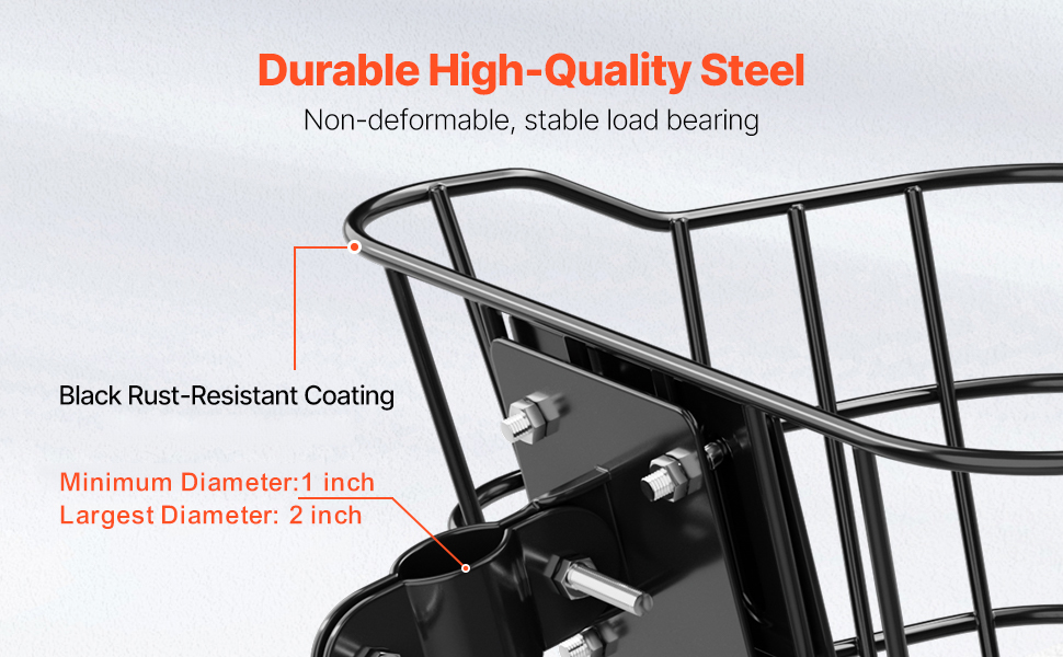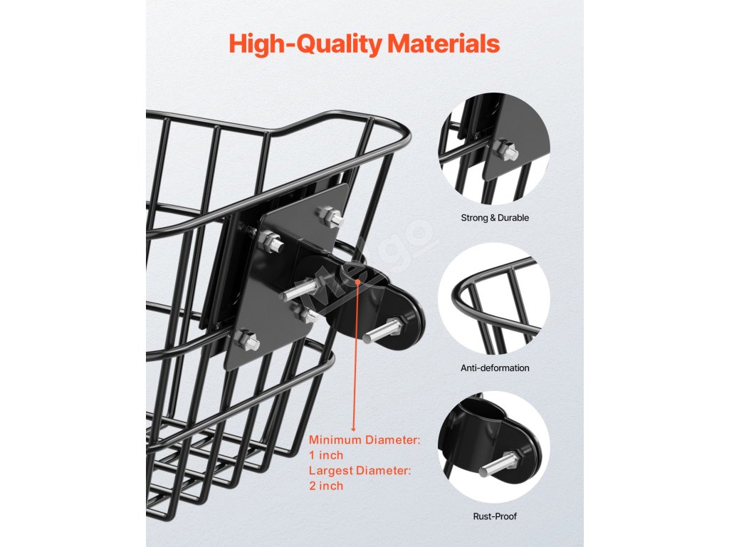 Košík na kolobežku je vyrobený z robustného kovu s vysokou pevnosťou, čo zaručuje trvanlivosť a odolnosť voči deformácii. Hladký povrch odolný proti korózii umožňuje pohodlnejšiu jazdu na bicykli vo vlhkom a daždivom počasí.
