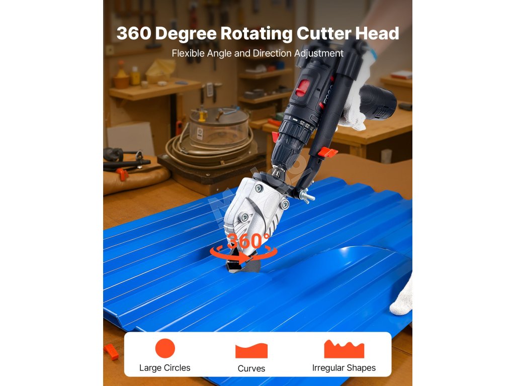 Nástavec na vŕtačku, nožnice na plech 360° hlava, pre 1.22 mm/1 mm