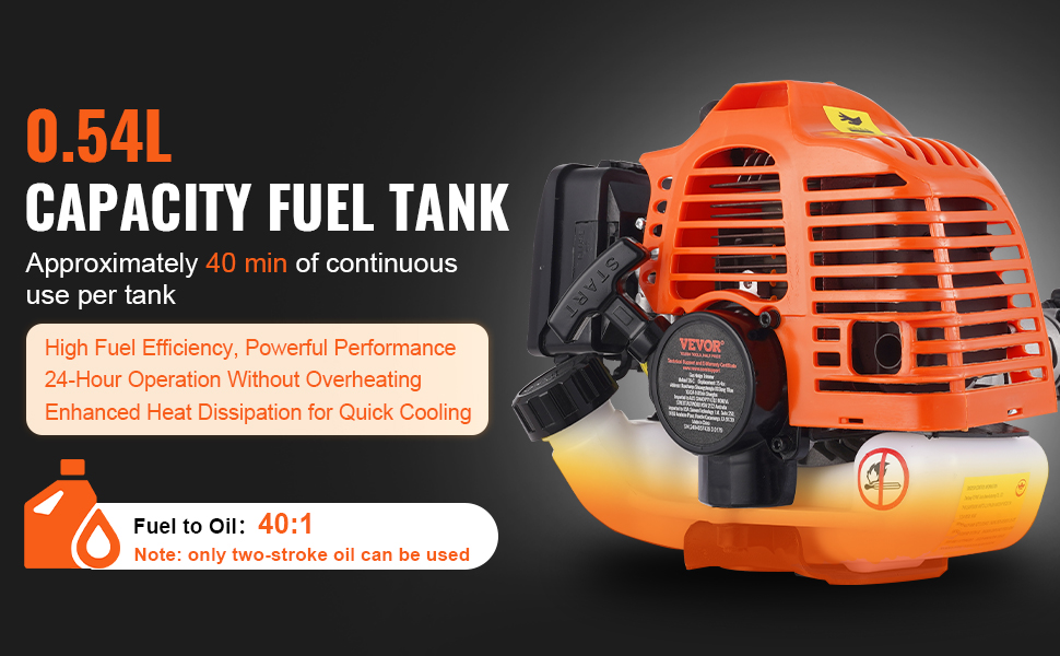 Jedna palivová nádrž poskytuje takmer 40 minút prevádzky, čím sa znižuje potreba častého dopĺňania paliva.