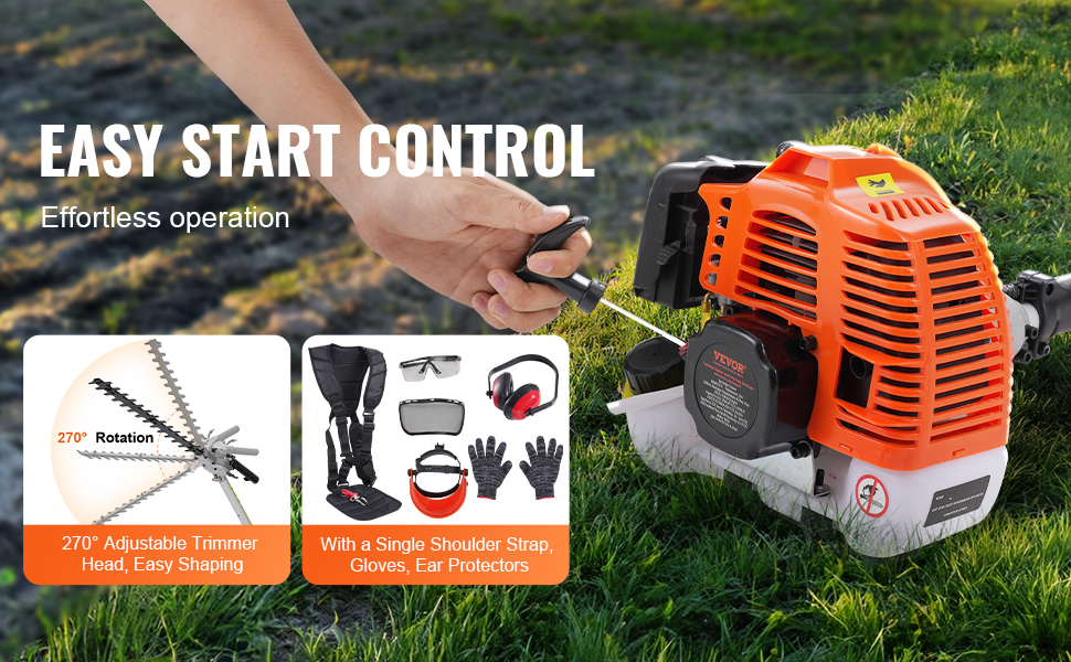 Benzínový plotostrih 15.7-inch 26cc 2-taktný 270° hlava dvojitá čepeľ