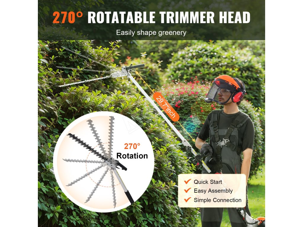 Benzínový plotostrih na tyči 15.7-inch 26CC dvojstranný nôž 270° hlava