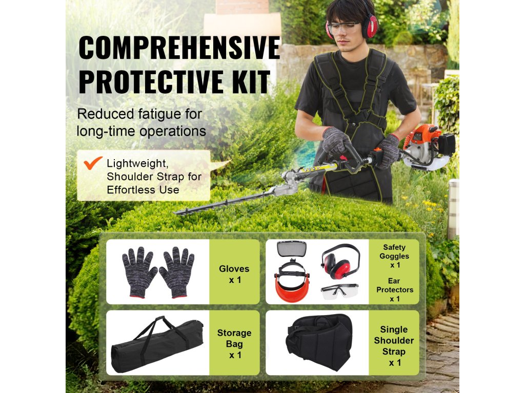 Naše tyčové nožnice na živý plot sa dodávajú s komplexnou sadou ochranných pomôcok, ktoré zabezpečujú jednoduché používanie a jednoduché ovládanie.