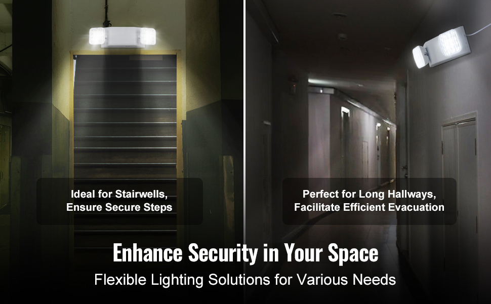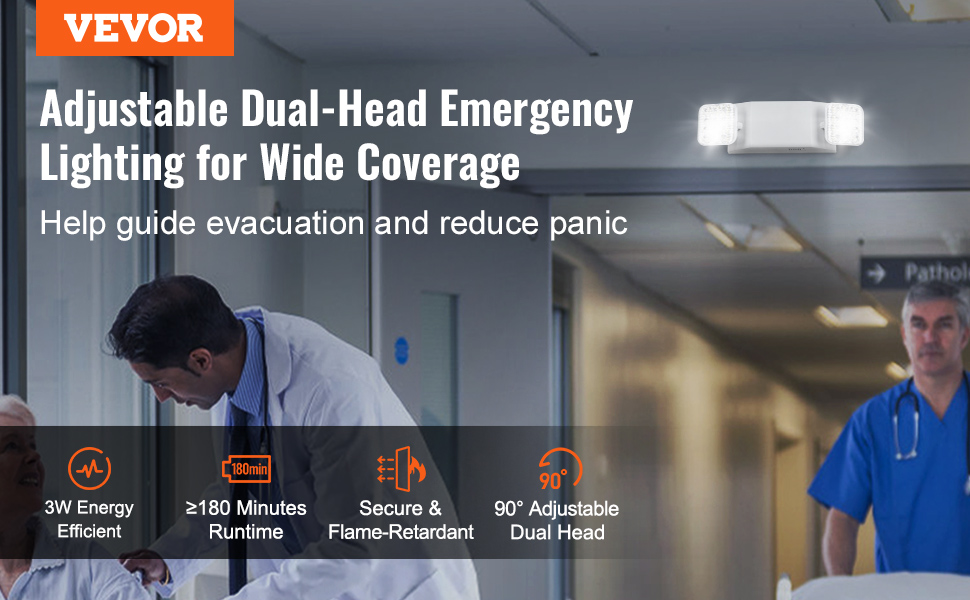 Naše 3W dvojhlavové núdzové svetlá LED s 12 čipmi LED na hlavu a nastaviteľnými hlavami v uhle 90° zabezpečujú účinnú evakuáciu pri výpadkoch prúdu, požiaroch, búrkach atď. S nabíjateľnou batériou s kapacitou 1800 mAh zostaňte pripravení a osvetlení s istotou na viac ako 180 minút nepretržitého svietenia!