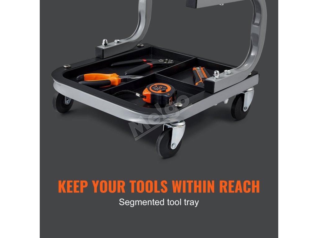 Stolička pre mechanika s podnosom na náradie, nosnosť 250 lbs