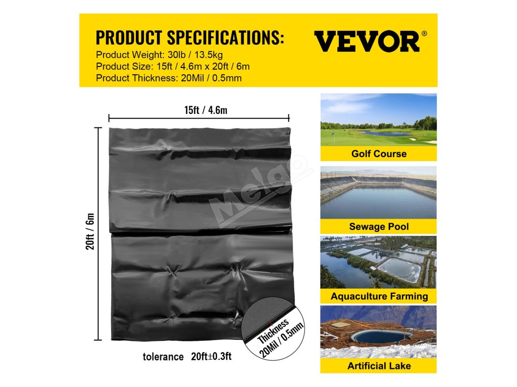 Jazierková fólia z lldpe 15×20 ft, 20 mil, pre rybie jazierko