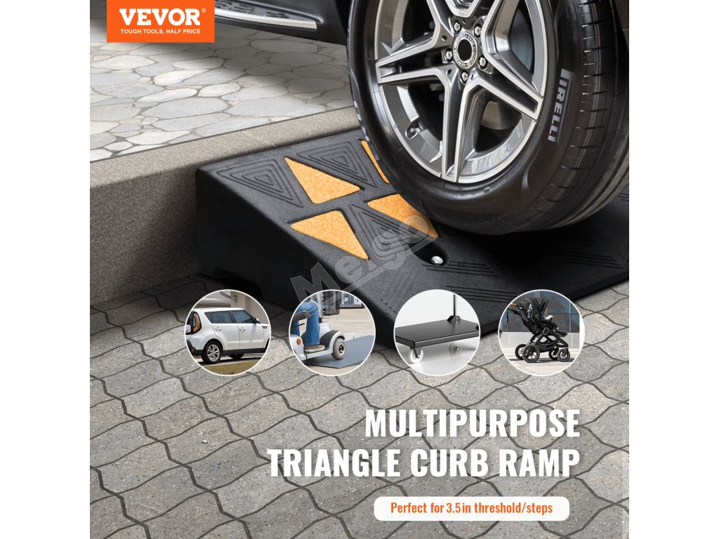 Odpoveď: VEVOR vám poskytuje rôzne veľkosti a výšky trojuholníkových rámp. Tento výrobok možno použiť na prahy alebo schody s výškou 3,7 palca, čo umožňuje kolesám s maximálnou šírkou 39,4 palca plynulé zdolávanie svahu.