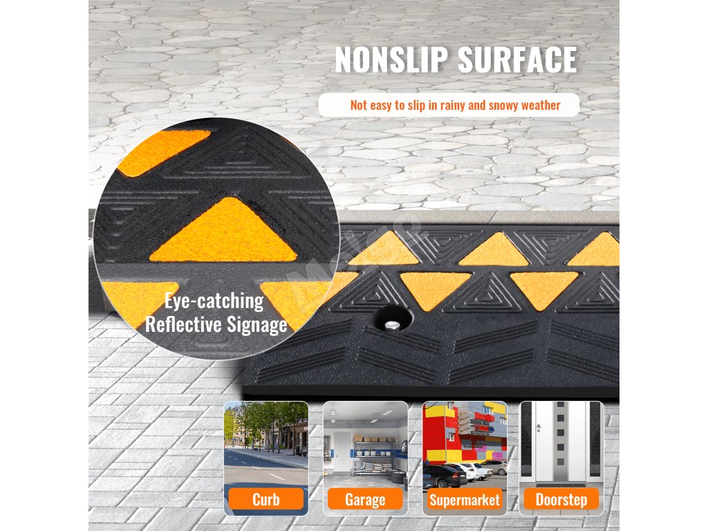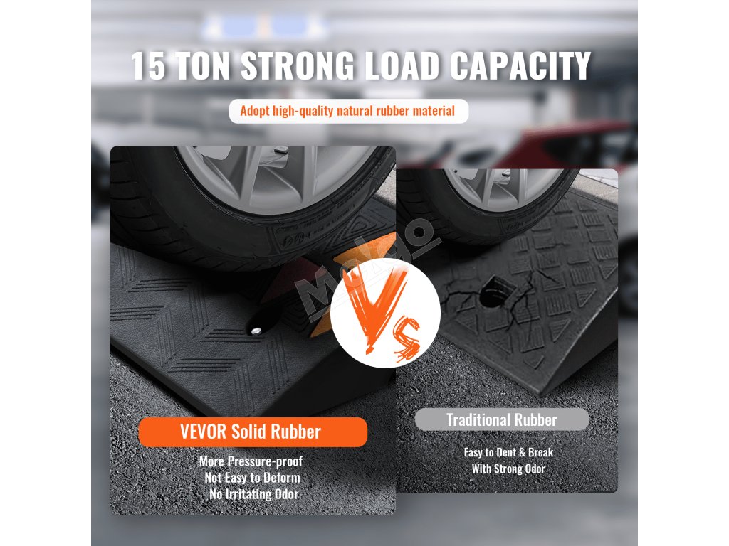 Gumová obrubníková rampa VEVOR je vyrobená z vysoko kvalitnej gumy. Tento materiál je trvanlivý a odolný voči poveternostným vplyvom. Vydrží pôsobenie slnka, dažďa, snehu a iných vplyvov. Zostane teda funkčná za všetkých podmienok. Guma je tiež odolná voči chemikáliám a olejom. Preto je vhodná na použitie v garážach a dielňach. Pevná konštrukcia. Pevná konštrukcia rampy zaručuje, že si zachová svoj tvar. Nedeformuje sa ani pri veľkom zaťažení. To znamená, že je spoľahlivým riešením na dlhodobé používanie. Vďaka svojej odolnosti je rampa cenovo výhodnou voľbou. Získate dlhodobý výkon s minimálnou údržbou.