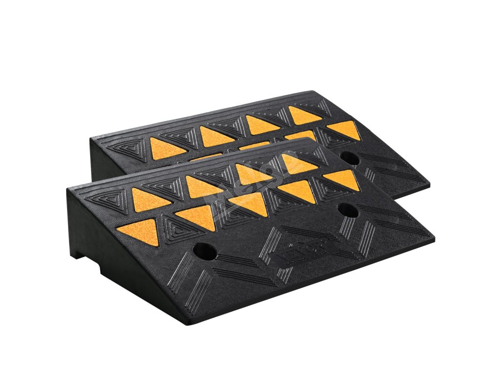 Gumené obrubníkové rampy poskytujú plynulý prechod cez obrubníky alebo schody pre autá, invalidné vozíky, bicykle a motocykle. So šírkou 15 palcov sú tieto rampy dostatočne široké na to, aby sa na ne zmestilo viacero kolies, takže sú vhodné pre rôzne vozidlá.