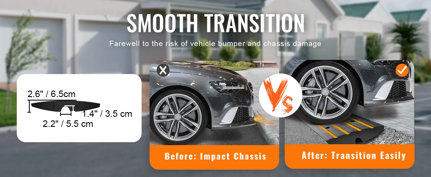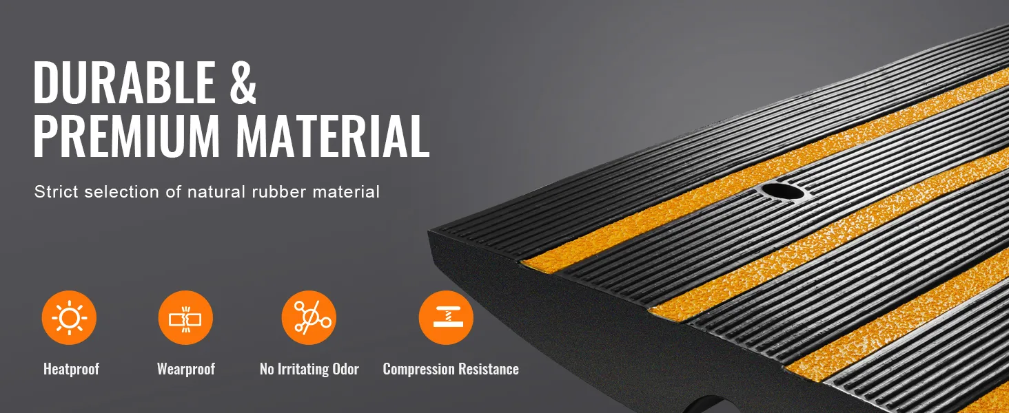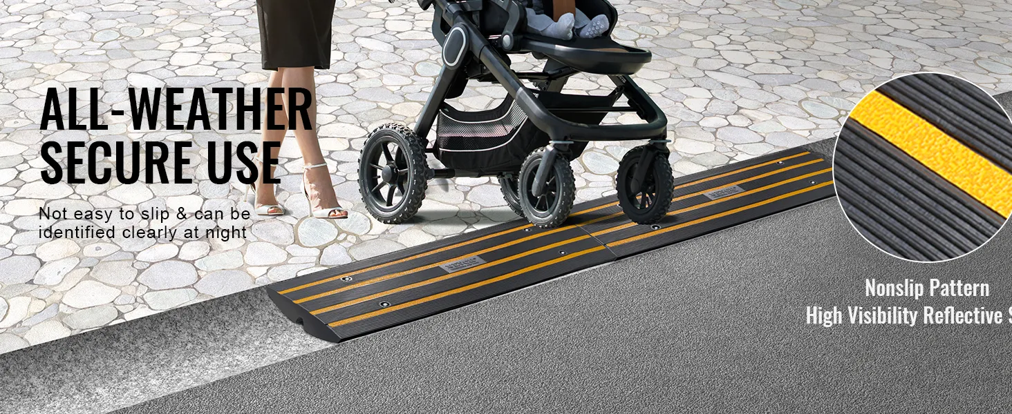 Gumené príjazdové rampy VEVOR majú protišmykový povrch. Vďaka tomu po nich môžu vozidlá bezpečne prechádzať. Je to dôležité najmä v mokrých podmienkach. Konštrukcia rampy tiež poskytuje výrečný prechod cez obrubníky. Tie zabraňujú prepadávaniu vozidiel na dno. Znižujete tak riziko poškodenia podvozku vozidla. Jasné žlté pruhy na rampových systémoch uľahčujú viditeľnosť. Pomáhajú vám vidieť aj za zhoršených svetelných podmienok. Tento dodatočný bezpečnostný prvok je veľmi dôležitý na predchádzanie nehodám, najmä na frekventovaných miestach, ako sú nakladacie rampy. Bezpečnostné prvky rámp poskytujú istotu pre každého majiteľa nehnuteľnosti.