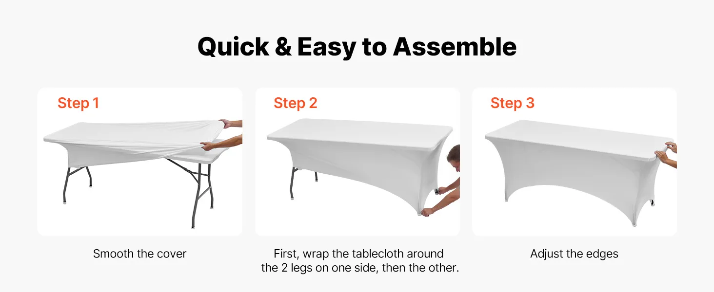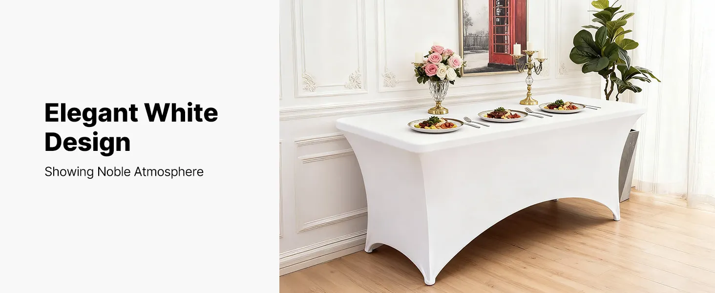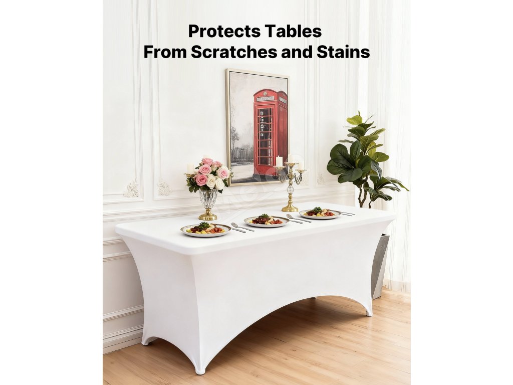 Elastický obrus 6 ks na 8FT obdĺžnikový stôl, biely, umývateľný
