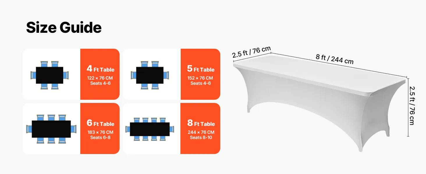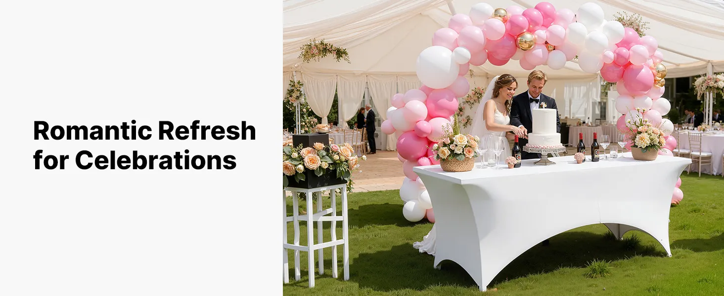 Tento elegantný strečový poťah na stôl vyrobený z prvotriednej spandexovej tkaniny zvýrazní celkový vzhľad vášho stola. Je ideálny na svadby, promócie, narodeniny a iné výnimočné príležitosti a dodá vašej udalosti rafinovaný a štýlový nádych.