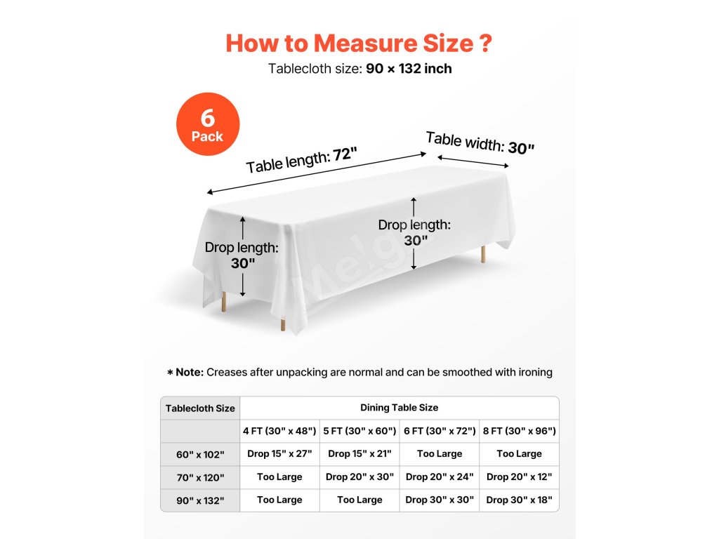 Obrusy na obdĺžnikový stôl, 6 ks, 90×132 inches, polyester, prateľné