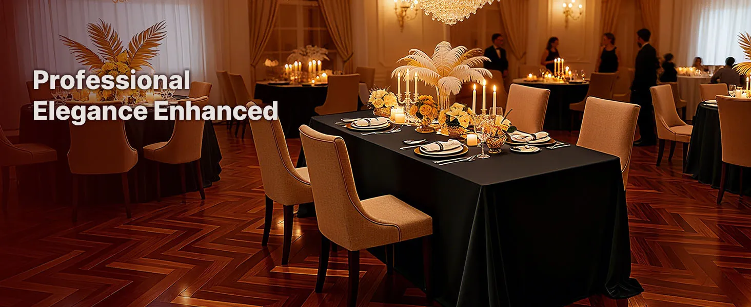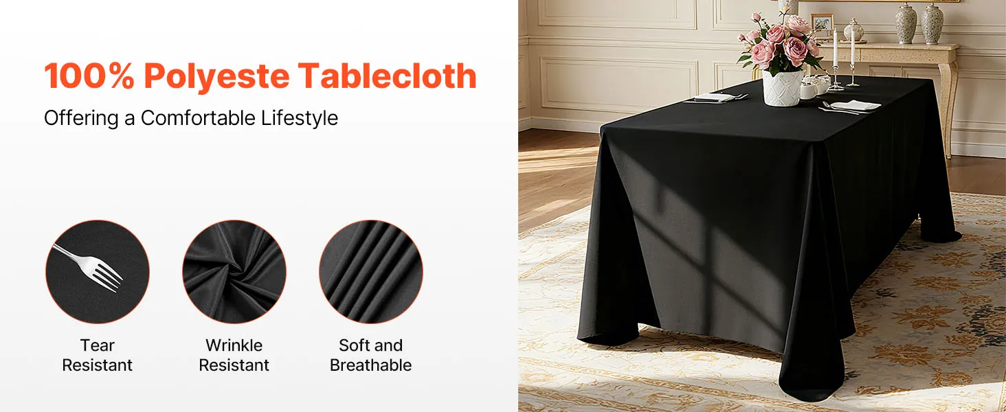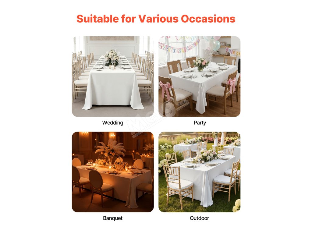 Tento elegantný obrus vyrobený z prvotriednej polyesterovej tkaniny zvýrazní celkový vzhľad vášho stola. Je ideálny na svadby, promócie, narodeniny a iné výnimočné príležitosti a dodá vašej udalosti nádych noblesy a štýlu.