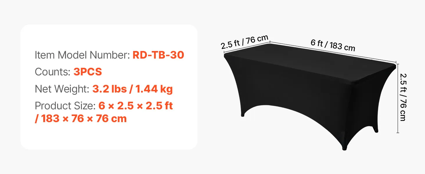 Sada 3 strečových obrusov na 6FT obdĺžnikový stôl, čierne, nezmačkavé