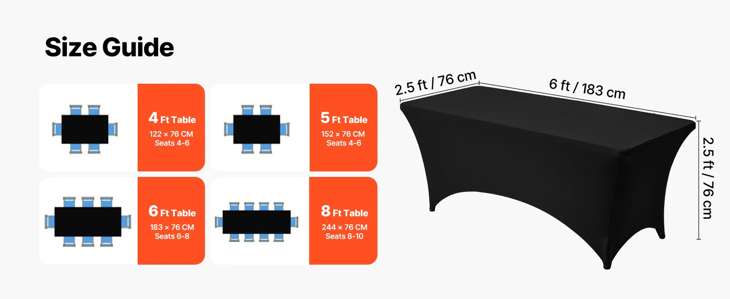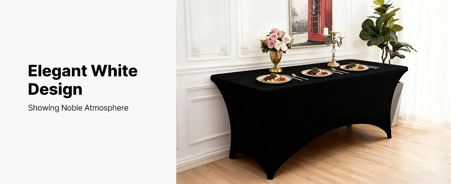Tento elegantný strečový poťah na stôl vyrobený z prvotriednej spandexovej tkaniny zvýrazní celkový vzhľad vášho stola. Je ideálny na svadby, promócie, narodeniny a iné výnimočné príležitosti a dodá vašej udalosti rafinovaný a štýlový nádych.
