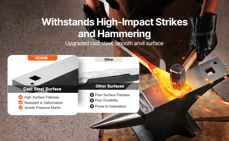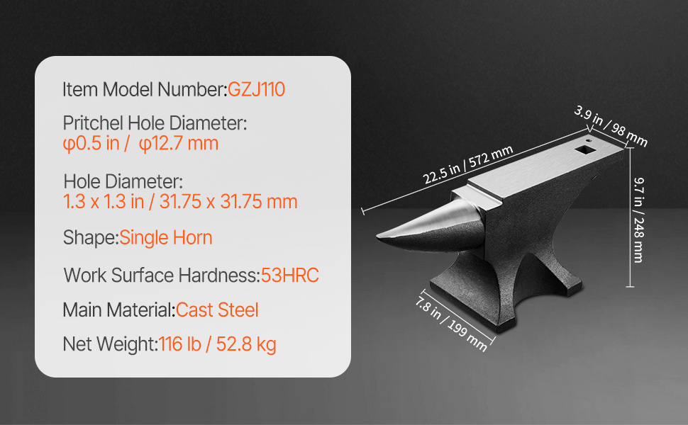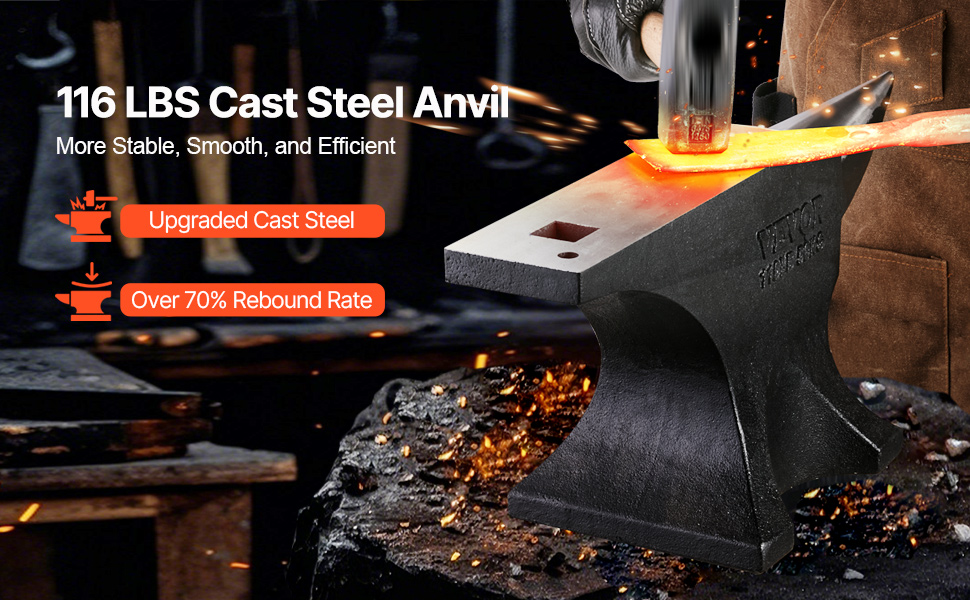 Táto jednorohá kovadlina je vyrobená z vysokokvalitnej liatej ocele a poskytuje odolnosť a stabilitu. Povrch je hladký a odolný voči preliačinám. S mierou odskoku vyššou ako 70 % zabezpečuje lepšie a efektívnejšie spracovanie.
