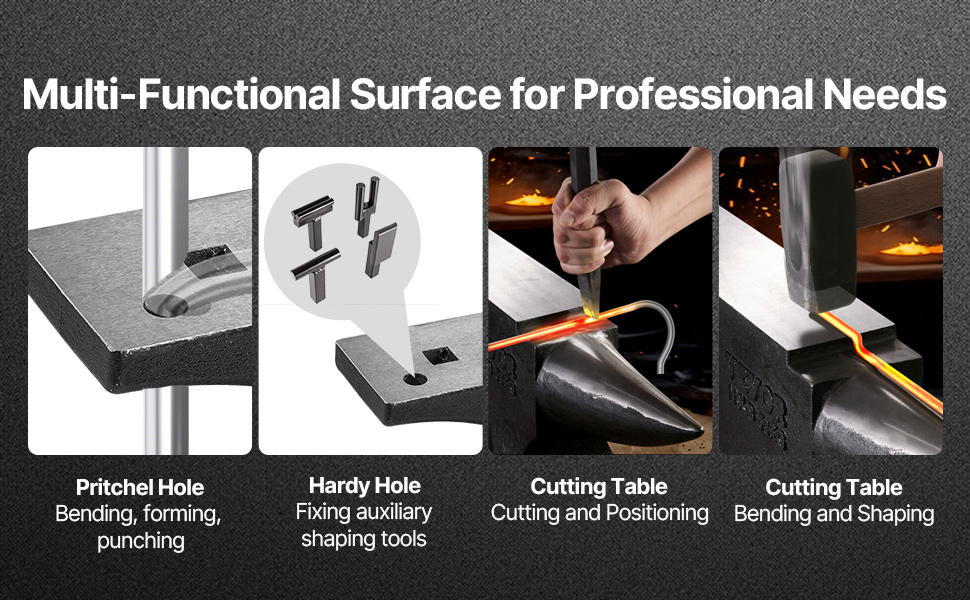 Precízne navrhnuté funkčné otvory na povrchu poskytujú hladšiu a jemnejšiu prácu, čo uľahčuje presné tvarovanie a ohýbanie materiálov. Rezací stôl kováčskej kovadliny poskytuje profesionálny zážitok z rezania a tvarovania.