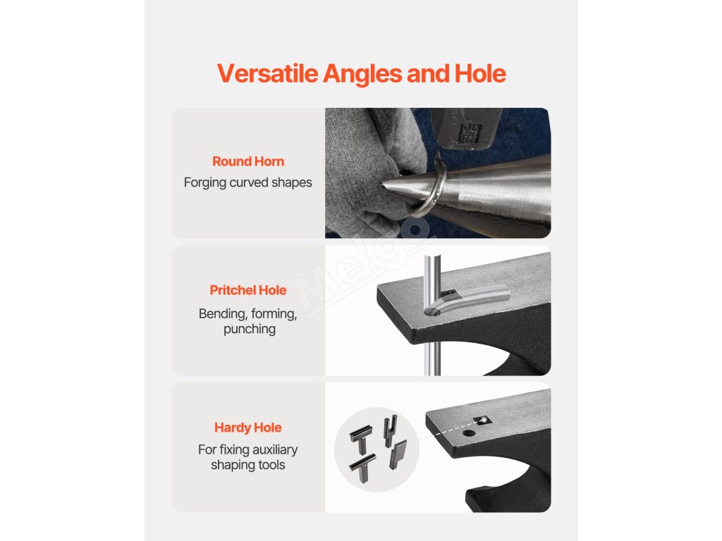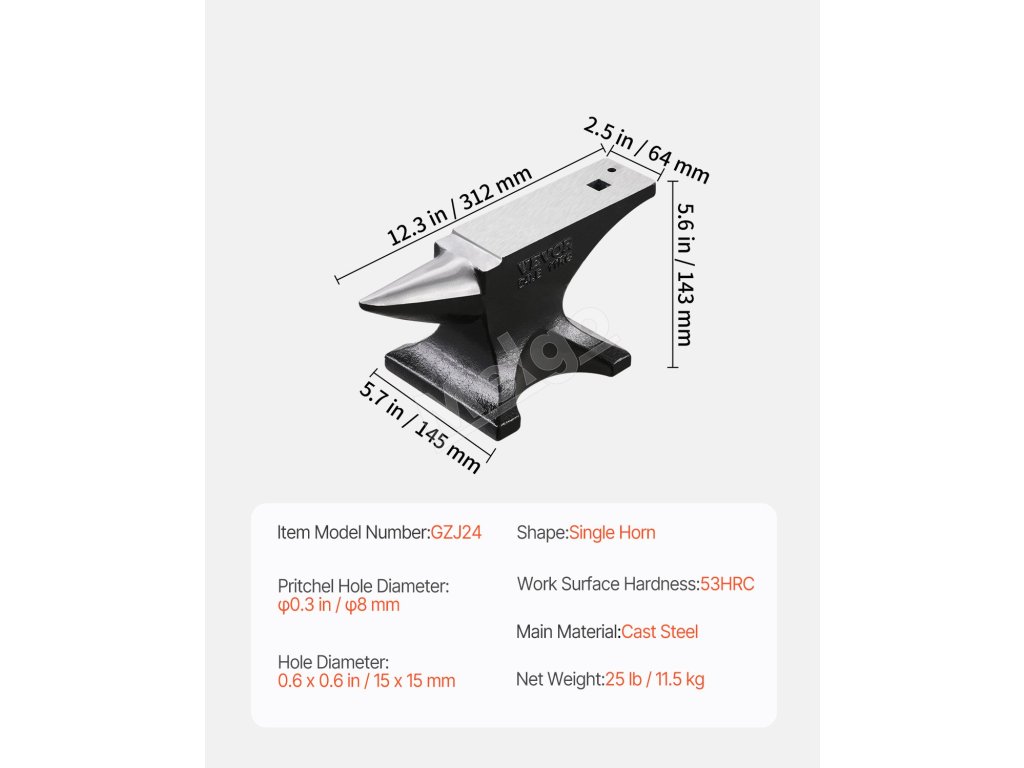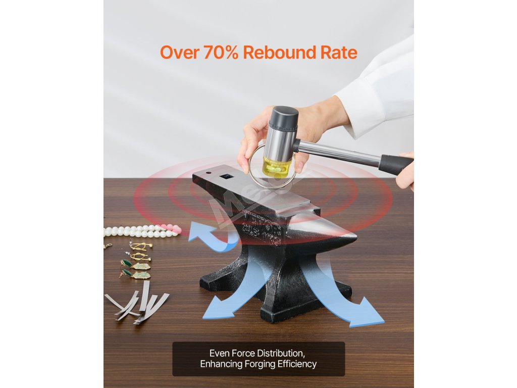 Táto jednorohá kovadlina je vyrobená z vysokokvalitnej liatej ocele a poskytuje odolnosť a stabilitu. Povrch je hladký a odolný voči preliačinám. S mierou odskoku vyššou ako 70 % zabezpečuje lepšie a efektívnejšie spracovanie.