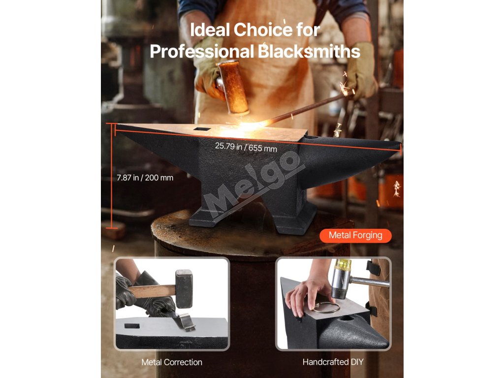 Naša kováčska kovadlina je vhodná na úlohy, ako je nitovanie, rovnanie, kovanie a tvarovanie. Či už vyrábate nože, meče, kladivá alebo dýky, alebo pracujete na projektoch pre domácich majstrov, poskytuje pevný základ pre rôzne úlohy pri spracovaní kovov.