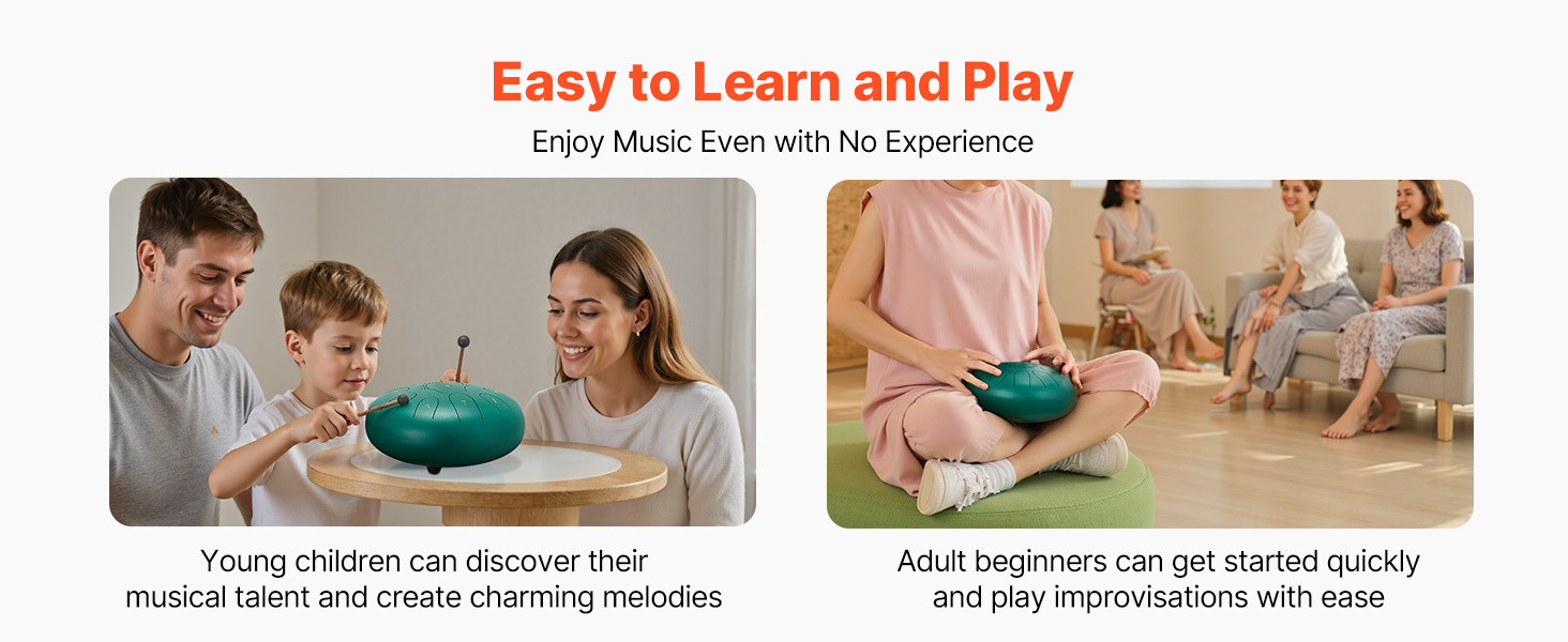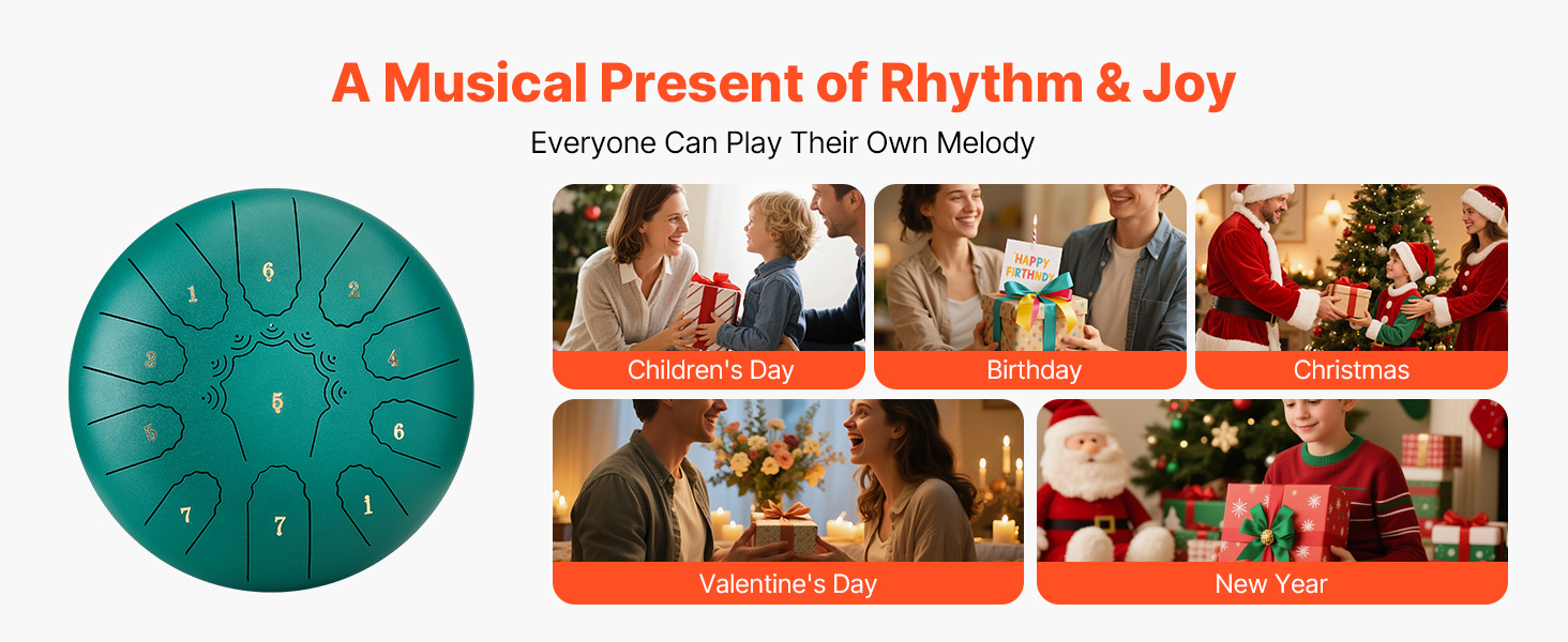 Náš oceľový bubon vydáva éterický a čistý tón, ktorý lieči myseľ. Je to premyslená voľba pre priateľov na zmiernenie stresu a nájdenie pokoja. Pre deti podnecuje zvedavosť, pestuje hudobné cítenie a podporuje ranú hudobnú výchovu. Ideálny darček na narodeniny, festivaly a výročia.
