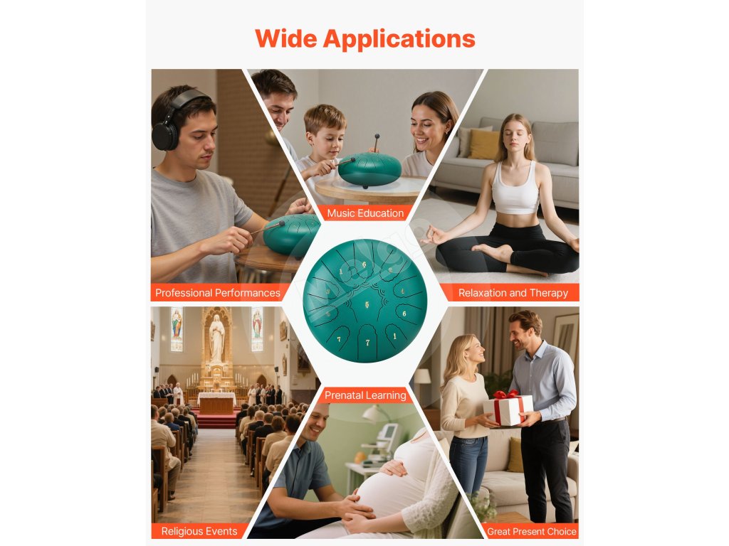 Náš oceľový bubon vydáva éterický a čistý tón, ktorý lieči myseľ. Je to premyslená voľba pre priateľov na zmiernenie stresu a nájdenie pokoja. Pre deti podnecuje zvedavosť, pestuje hudobné cítenie a podporuje ranú hudobnú výchovu. Ideálny darček na narodeniny, festivaly a výročia.