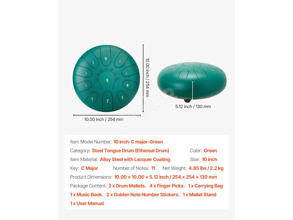 Jazýčkový bubon 25.4cm 11 tónov c-dur s knihou a paličkami zelený