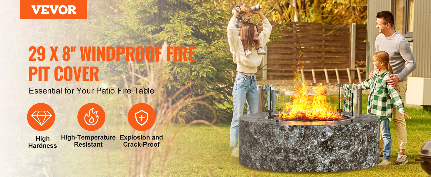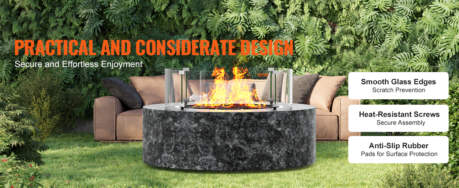 Naša ochrana proti vetru v ohnisku ponúka vynikajúcu ochranu proti vetru pre stabilný plameň. Je vyrobený z tvrdého tvrdeného skla a odolného hliníka, odolného voči teplu a rozbitiu. Jednoduchá inštalácia pomocou priloženého skrutkovača. Nevyhnutný na nádvorí, balkónových párty a na udržiavanie tepla pri stole s ohniskom.