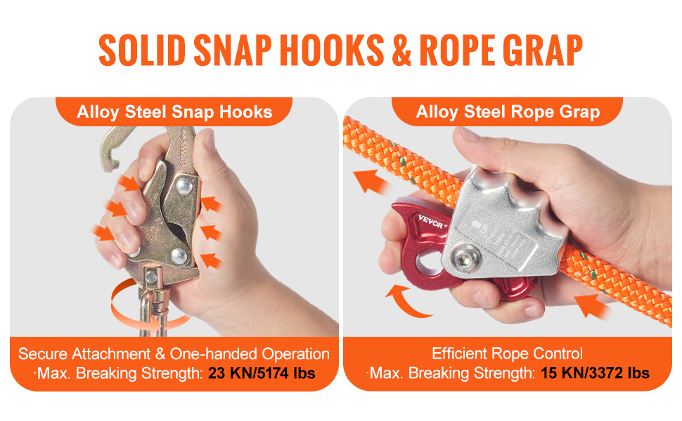 Zažite maximálnu bezpečnosť s našou šnúrou na preklopenie, ktorá je vybavená robustnou otočnou karabínou (pevnosť v pretrhnutí 23 KN/5174 libier) na bezpečné pripojenie k vášmu bezpečnostnému vybaveniu. Úchytka lana z hliníkovej zliatiny (pevnosť v pretrhnutí 15 KN/3372 lbs) umožňuje bezproblémový pohyb vďaka jednoduchému nastaveniu lana.