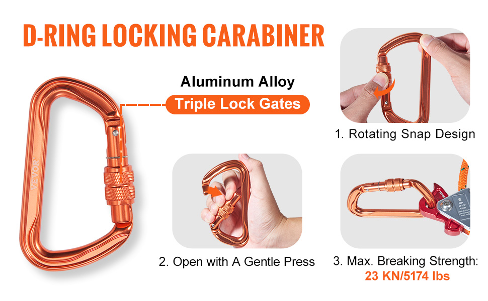 Naša karabína poskytuje stabilitu a oporu pri lezení na stromy vďaka pôsobivej pevnosti v ťahu 23 KN/5174 lbs. Je vybavená 3-cestným blokovacím mechanizmom na okamžité zaistenie a jednoduché otváranie jednou rukou.