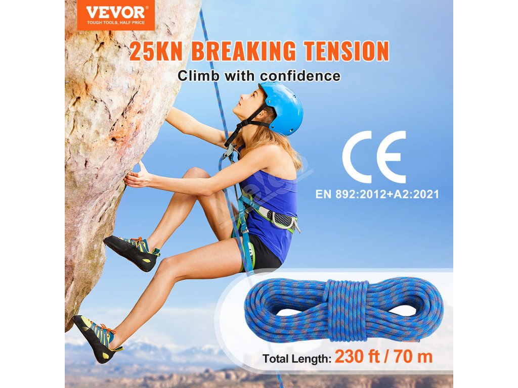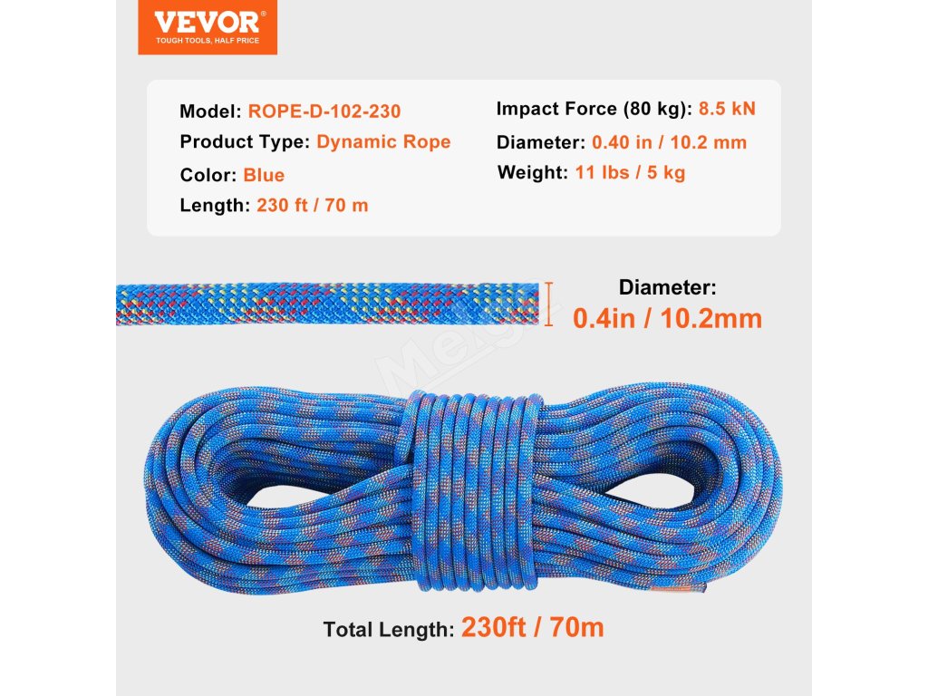Lezecké dynamické lano 10.2mm 70M, 25KN, s oceľovými karabínami