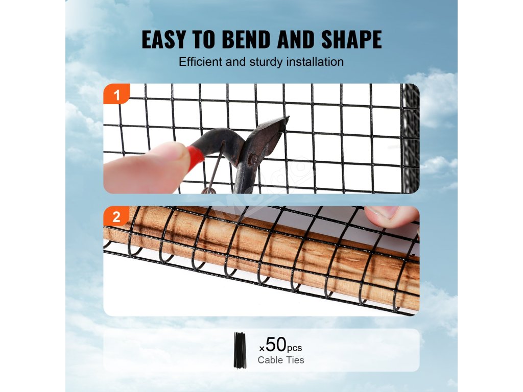 Táto ochrana solárnych panelov pred vtákmi je vyrobená z pozinkovaného oceľového drôtu zváraného do mriežky a potiahnutého PVC vrstvou, čo zaručuje robustnú trvanlivosť, stabilitu a odolnosť proti korózii. Slúži ako ochranná bariéra na ochranu pred vtákmi a inými drobnými živočíchmi. Vhodná na rôzne ochranné potreby.