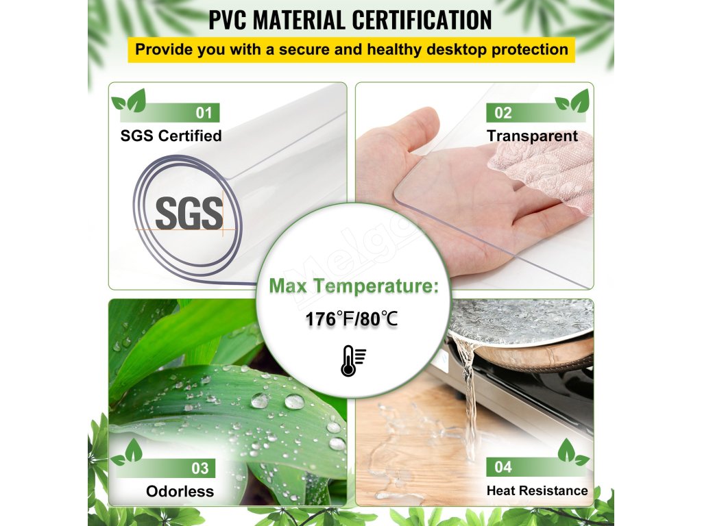 Táto priehľadná fólia z PVC má overenie SGS, čo zaručuje vysokú pevnosť, stabilitu a tepelnú odolnosť. Je skonštruovaná tak, aby vydržala dlhú životnosť. Okrem toho je bez zápachu a môže sa priamo dotýkať potravín, aby vám poskytla vynikajúce pohodlie.