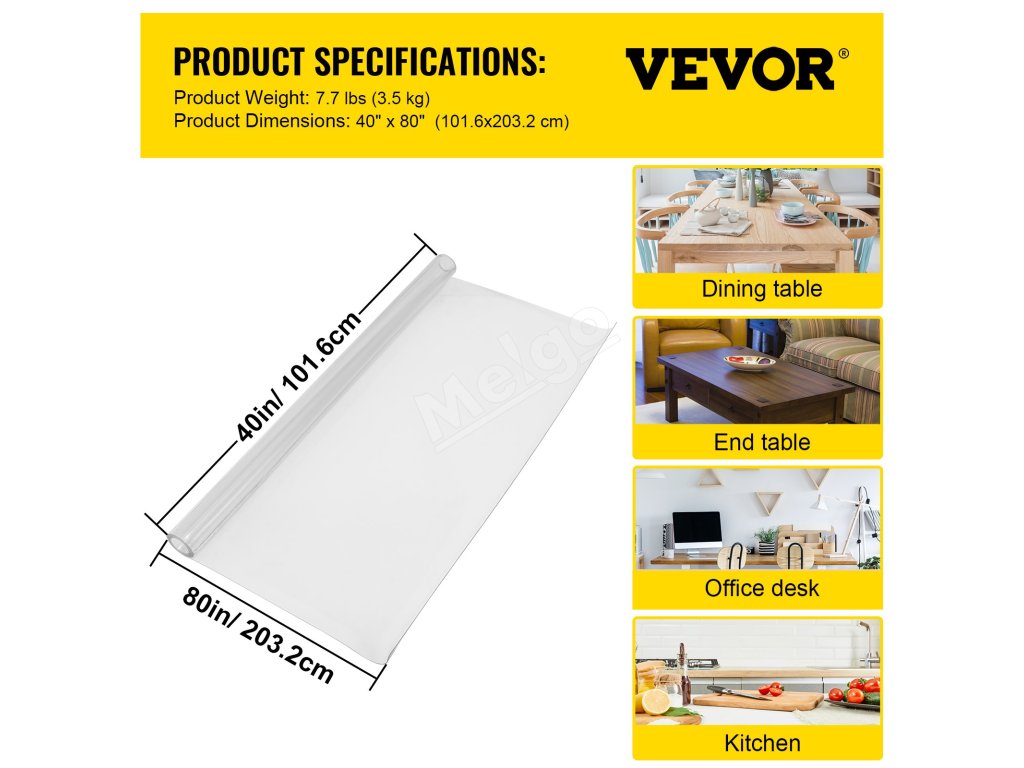 Priehľadná pvc podložka na stôl 40×80 inch, 1.5 mm nepremokavá