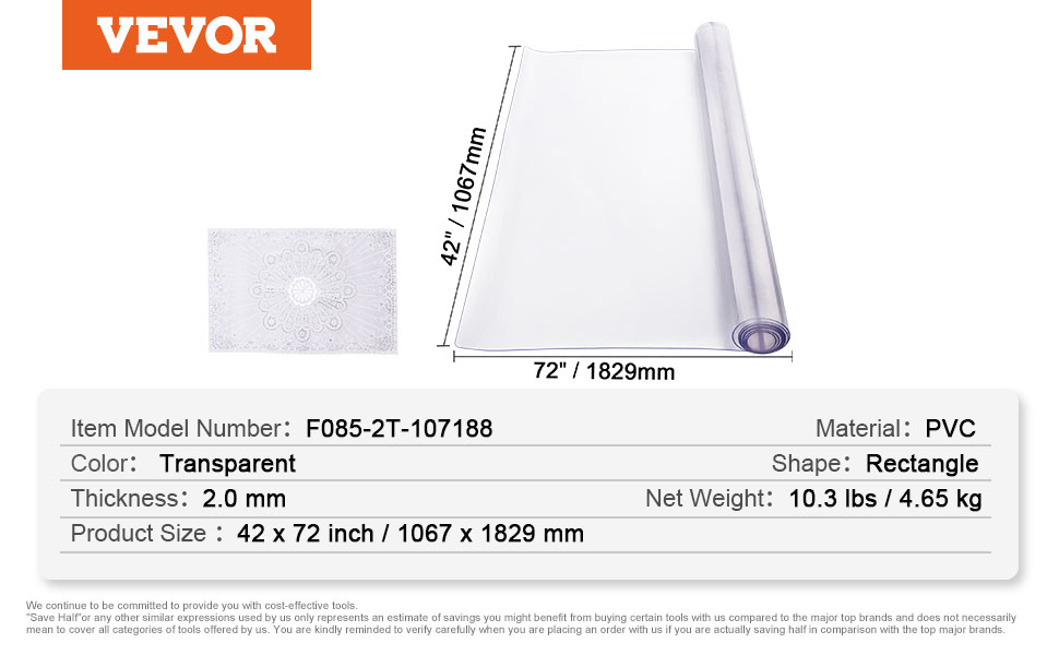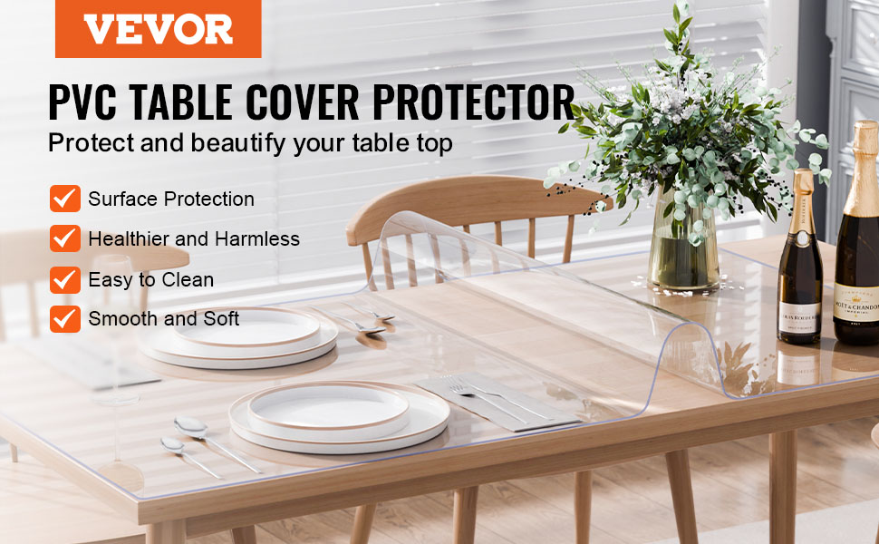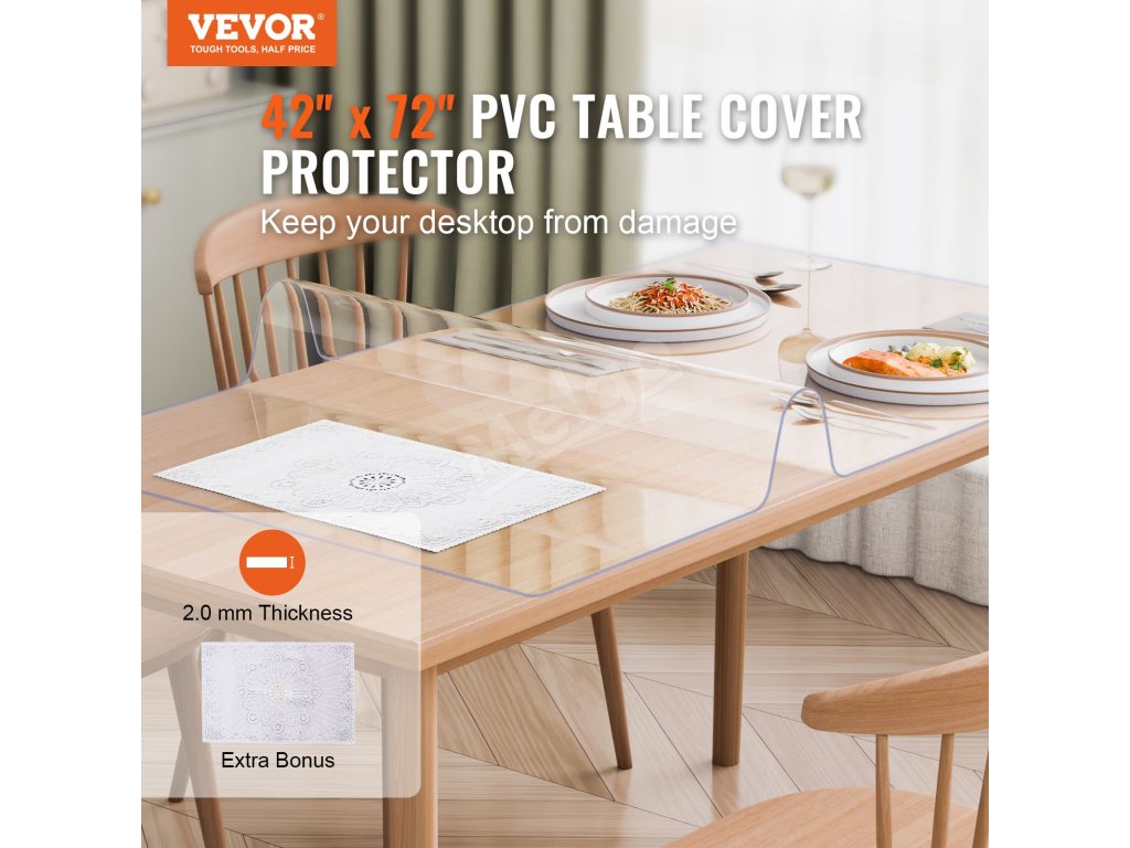 Priehľadný chránič stola je vyrobený z vysokokvalitného PVC materiálu, je odolný voči opotrebovaniu, poskytuje vynikajúcu protišmykovosť a odoláva vysokým teplotám. Môžete ich bez obáv používať priamo s potravinami. Užívajte si bezproblémový a čistý pracovný stôl!