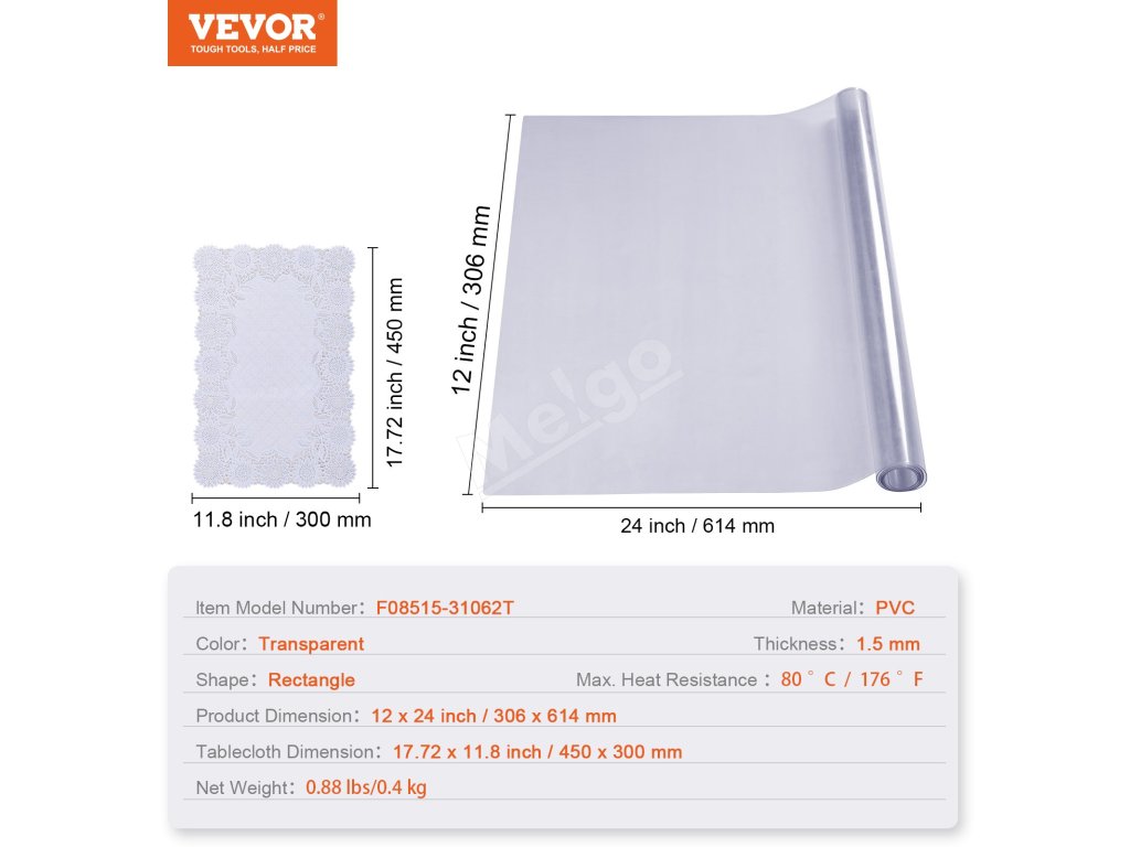 Priehľadná ochrana stola je vyrobená z vysoko kvalitného PVC materiálu, je odolná proti opotrebeniu, poskytuje vynikajúcu odolnosť proti pošmyknutiu a vydrží vysoké teploty. Môžete ich bez obáv používať priamo s potravinami. Vychutnajte si bezproblémovú a čistú pracovnú plochu!