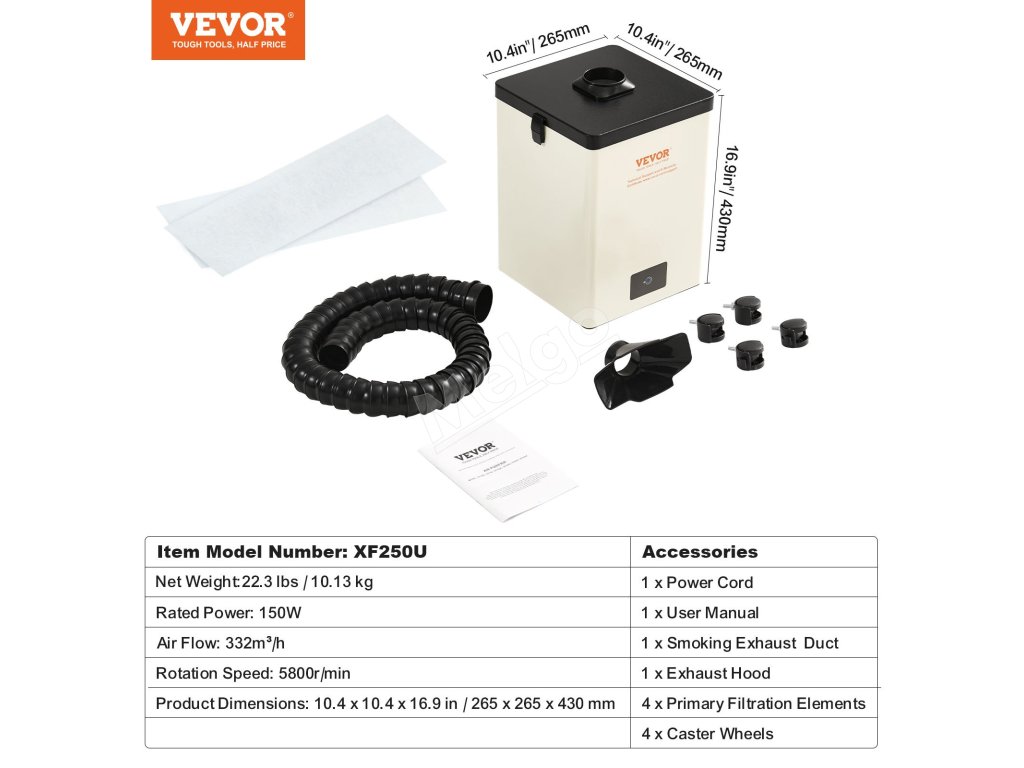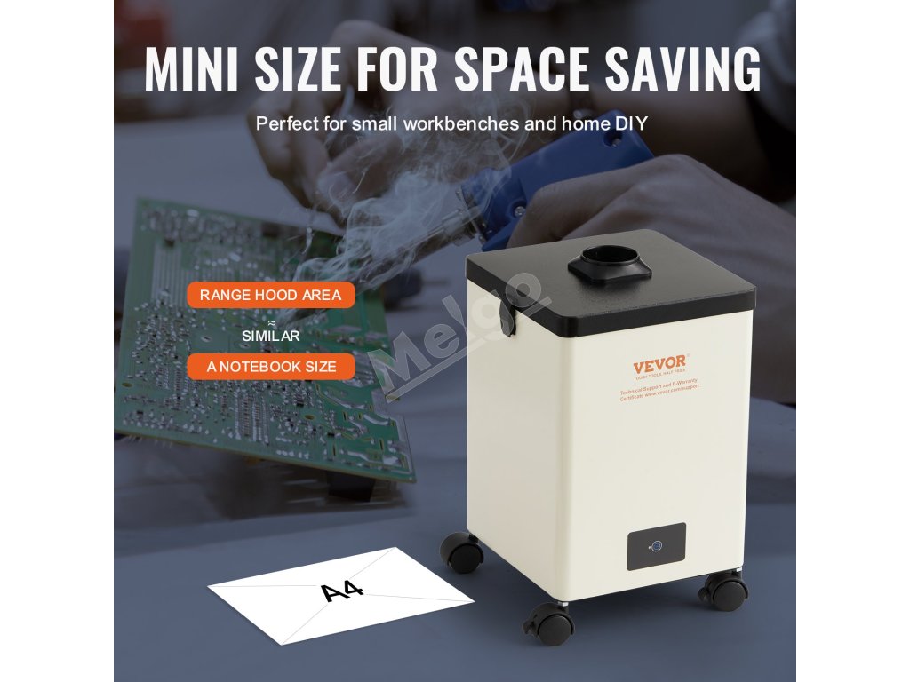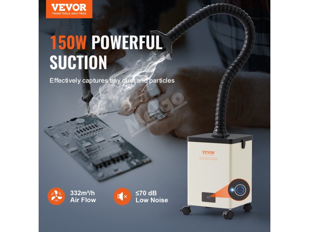 Predstavujeme vám odsávač spájkovacích dymov VEVOR, ktorý je navrhnutý tak, aby zlepšil váš zážitok z spájkovania. Vďaka výkonnému 150W motoru a silnému prietoku vzduchu 332 m³/h dokáže rýchlo odstrániť dym a škodlivé častice. vďaka 3-stupňovému filtračnému systému a 99,99% miere čistenia zostane váš pracovný priestor čistý, bezpečný a zdravý.