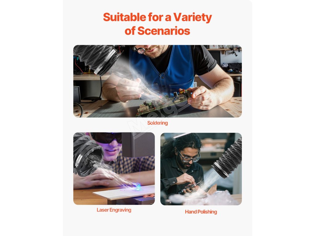 Odsávač pár ponúka veľkú plochu, ktorá účinne zachytáva a pohlcuje dym, čím zabezpečuje, že váš pracovný priestor zostane čistý a bez dymu.