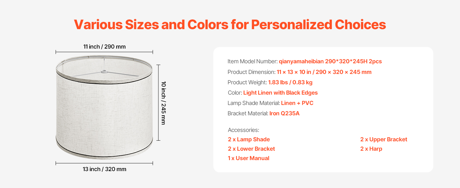 Toto tienidlo lampy má pevný kovový rám vyrobený z ocele Q235A, ktorý zaručuje dlhodobú životnosť a odolnosť voči deformácii pre spoľahlivý výkon v priebehu času.