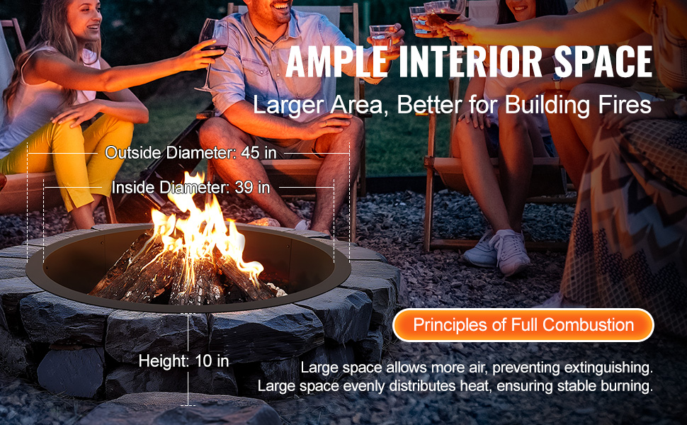 Tento krbový prstenec vyrobený z uhlíkovej ocele odolnej voči vysokým teplotám s matným čiernym práškovým náterom odoláva korózii a hrdzi. Poskytuje dostatočný priestor na rast plameňa, ideálny na kempovanie v parku alebo na dvore, vytvára hrejivú atmosféru na sviatočné večery alebo stretnutia s priateľmi.