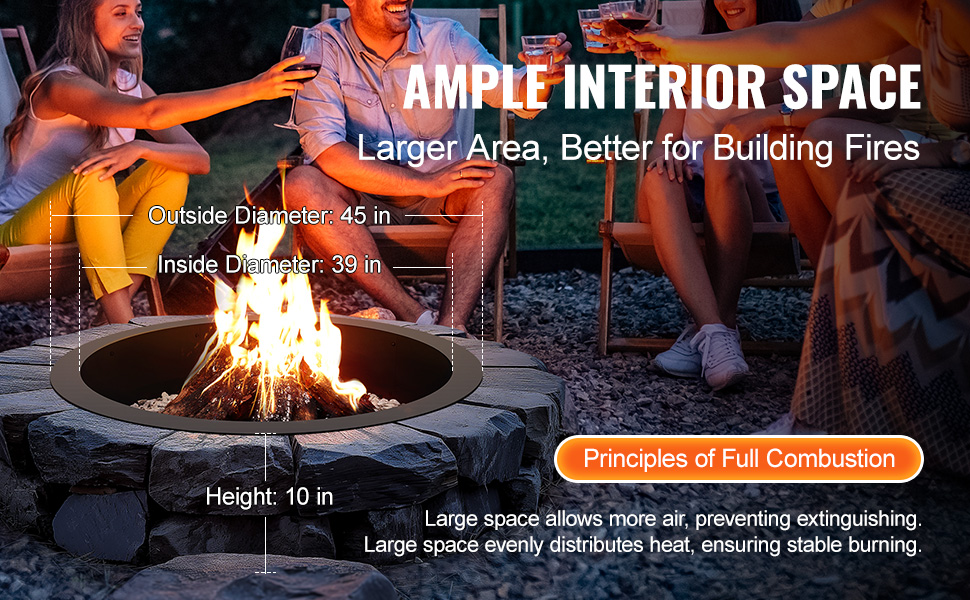 Tento krbový prstenec vyrobený z uhlíkovej ocele odolnej voči vysokým teplotám s matným čiernym práškovým náterom odoláva korózii a hrdzi. Poskytuje dostatočný priestor na rast plameňa, ideálny na kempovanie v parku alebo na dvore, vytvára hrejivú atmosféru na sviatočné večery alebo stretnutia s priateľmi.