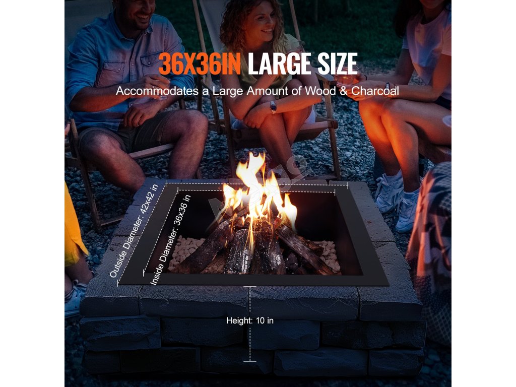 Vložka do ohniska štvorcová, 42×42/36×36 in, 10 in výška, oceľ