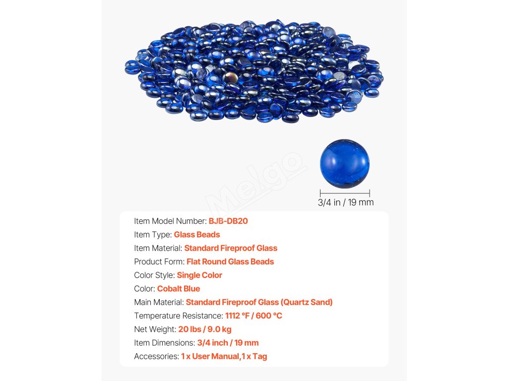 Sklenené kamienky do krbu 20lbs / 9kg 3/4-inch / 19.05 mm kobaltové