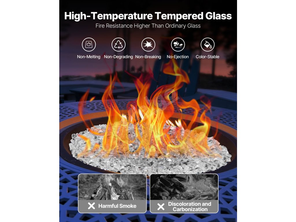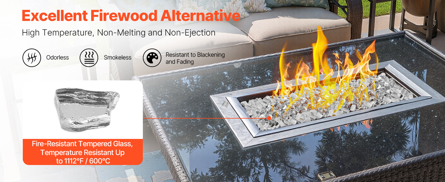 Toto ohnivé sklo je vyrobené z kremenného piesku a zvládne teploty až do 1112℉/ 600 ℃. Nepraská, netmavne, nevytvára dym ani zvláštne pachy, čo vám dáva pokoj pri každom použití.