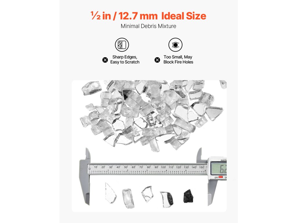 Sklenené kamene do krbu 10 lbs / 4.5 kg, 1/2-inch / 12.7 mm, bez dymu