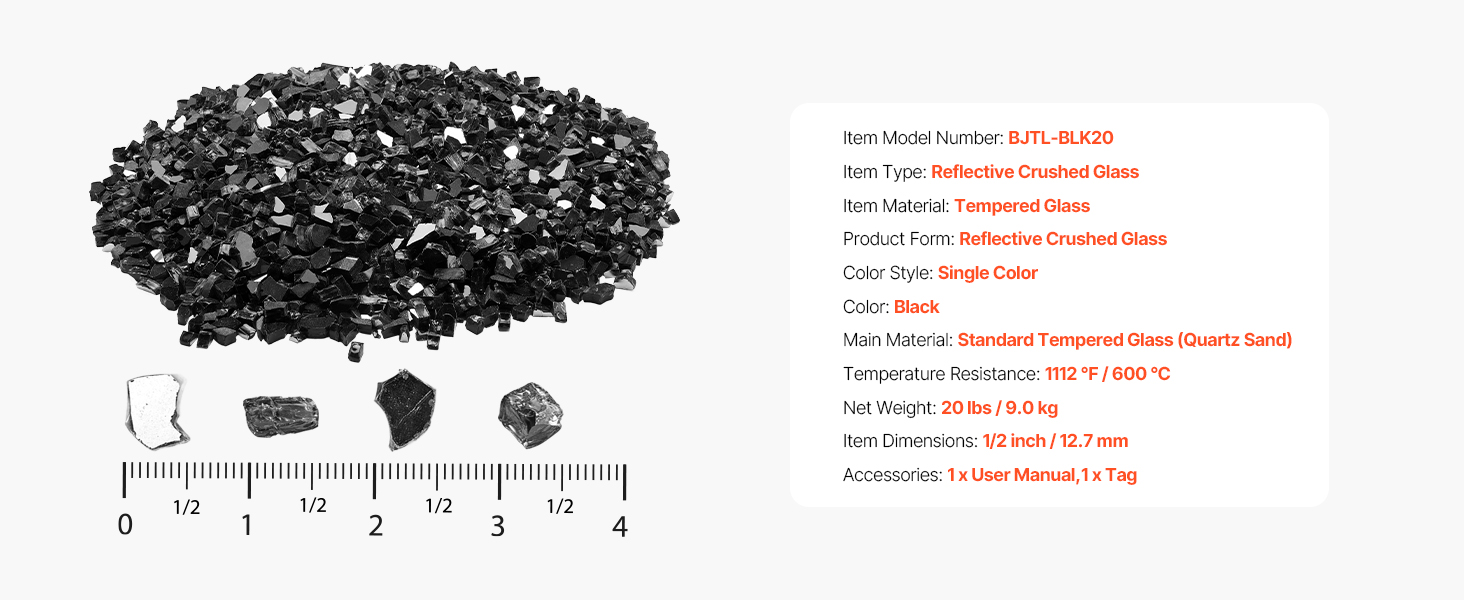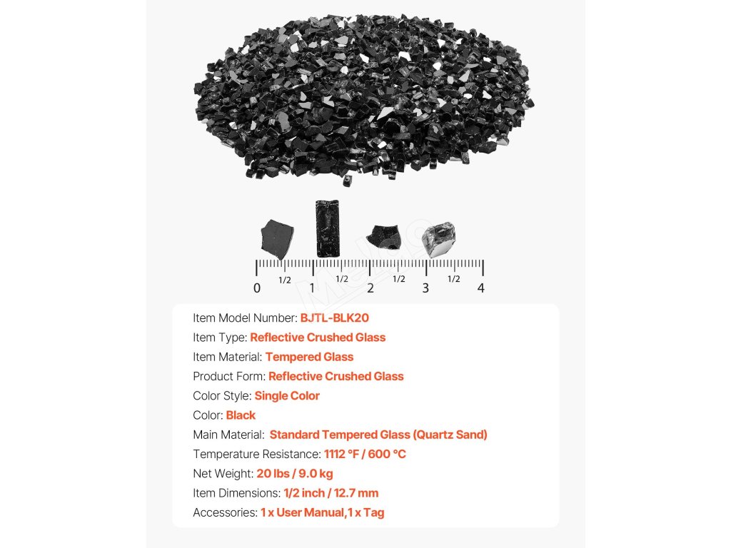 Sklenené kamienky do ohniska 20 lbs / 9.0 kg 12.7 mm čierne lesklé